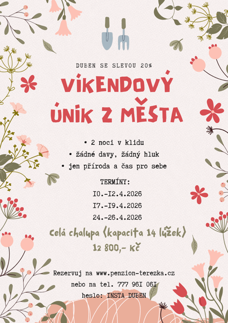 Rezervace je možná telefonicky na čísle 777 961 061 nebo e-mailem na penzionterezka@seznam.cz.